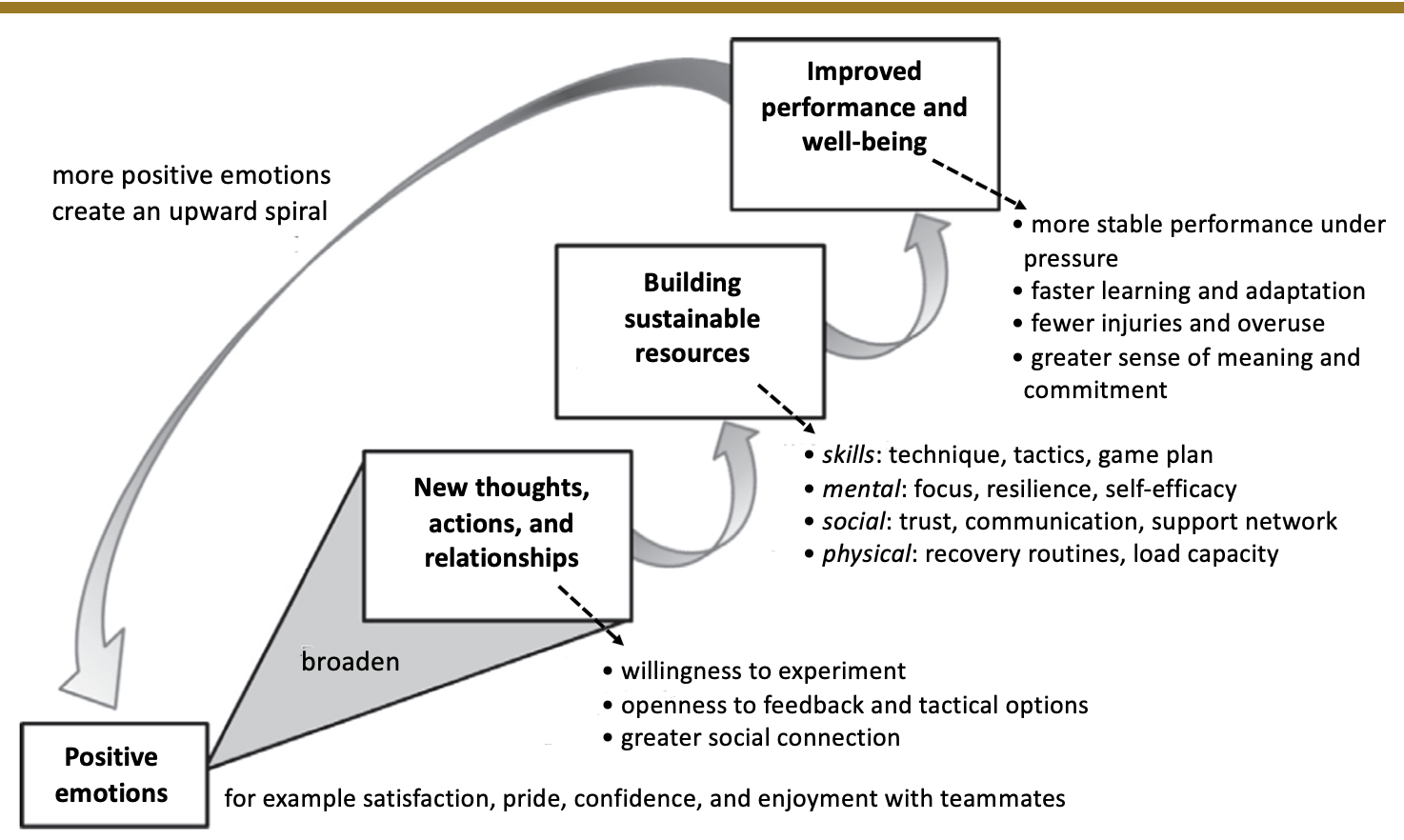 Positive emotions sustain an upward spiral (adapted to the sport context from the Handbook of Emotions by Lewis15).